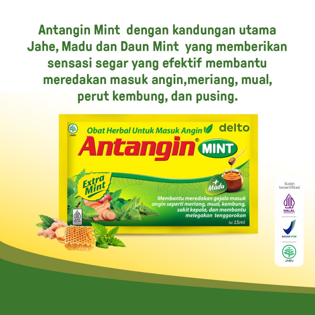 Antangin Mint Sirup Herbal Box 12 Sachet - Obat Herbal Masuk Angin Meriang Mual Kembung Sakit Kepala Melegakan Tenggorokan