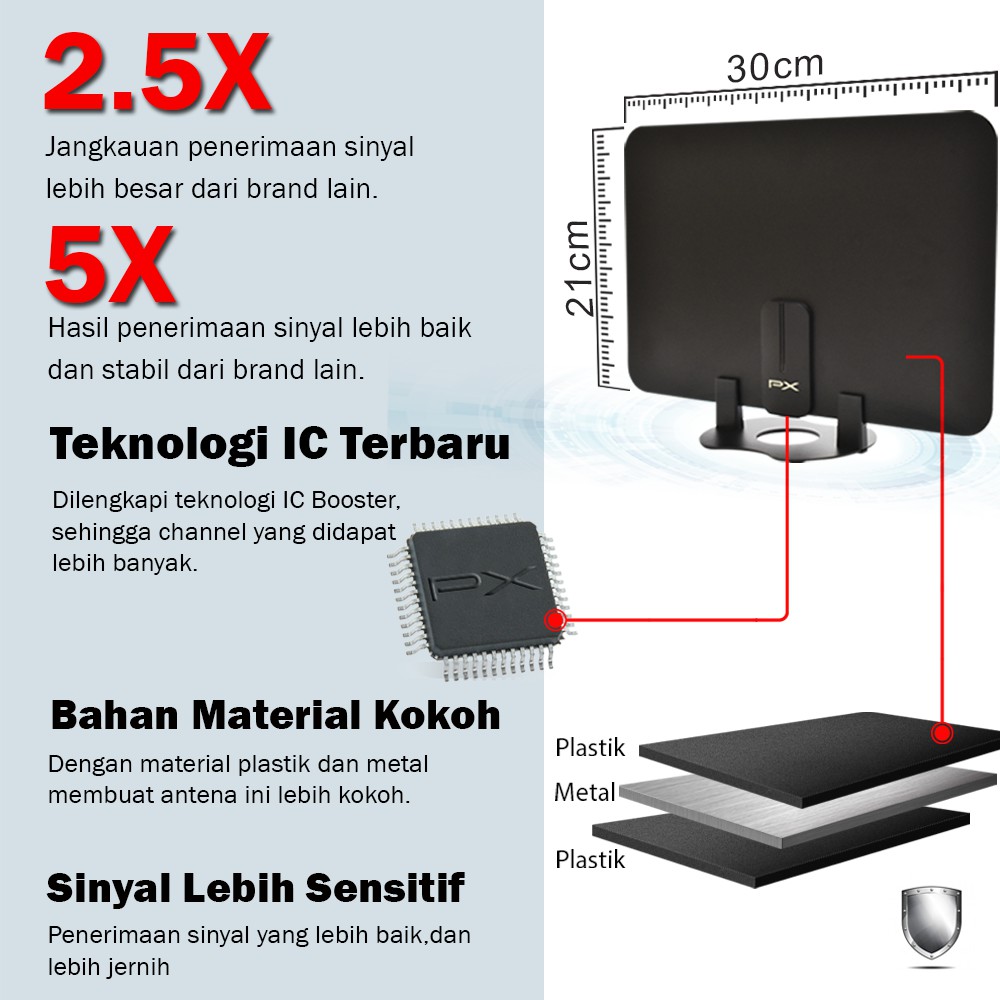 Antena TV Dinding Digital Analog Indoor DVB T2 + Booster PX UDA-3000A
