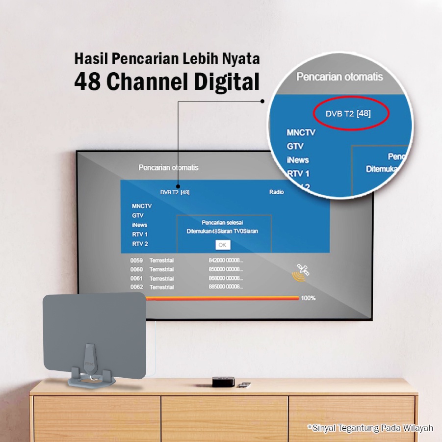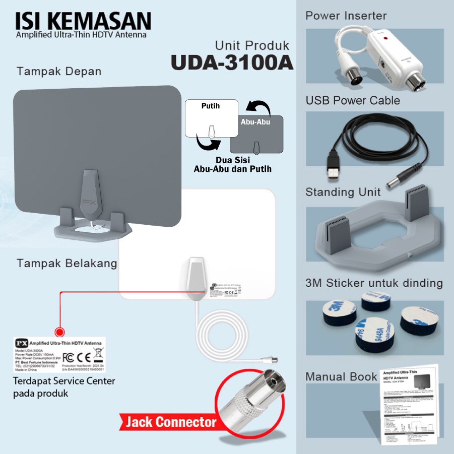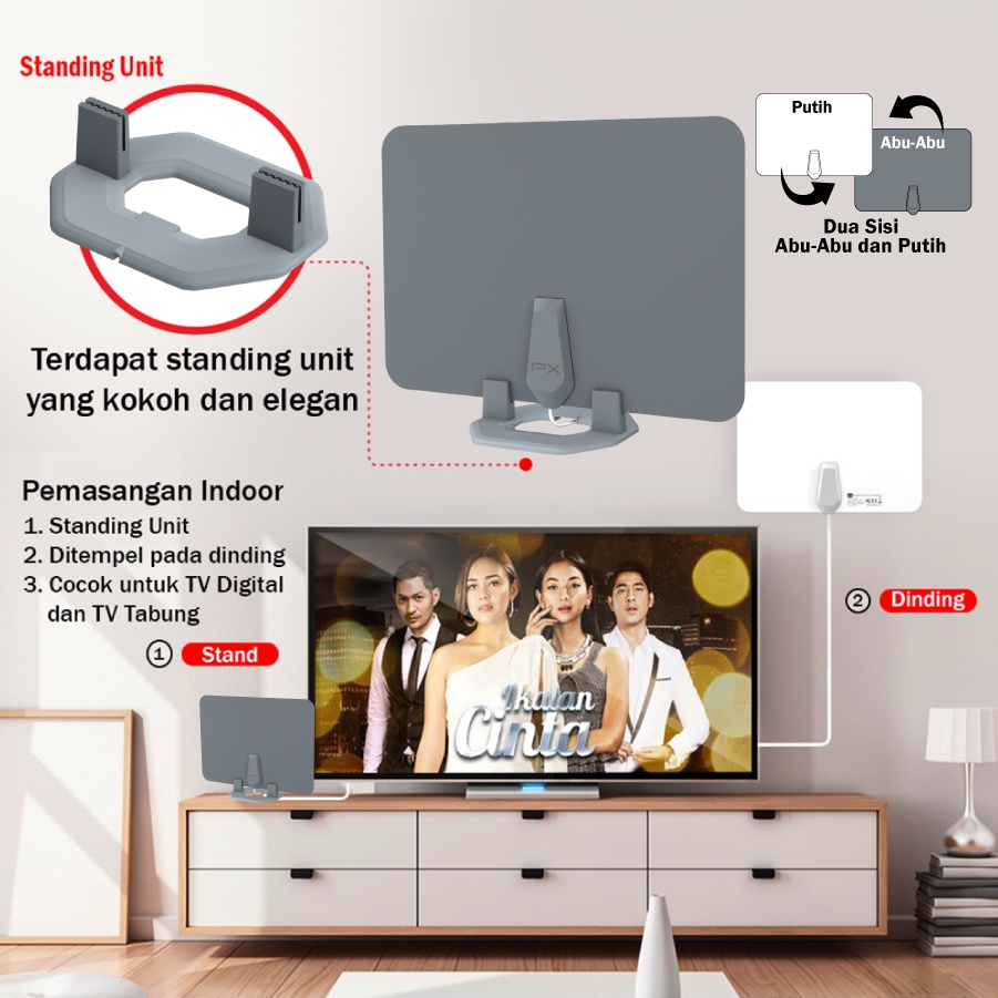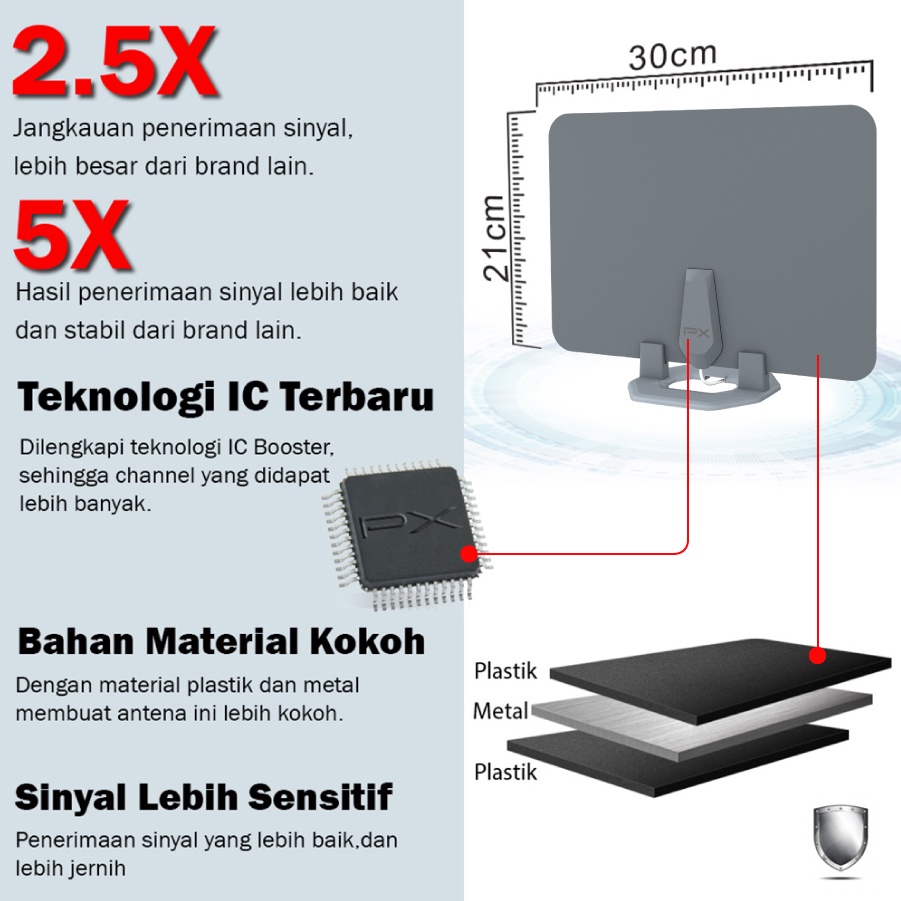 Antena TV Dinding Digital Analog Indoor DVBT2+Booster PX UDA-3100A