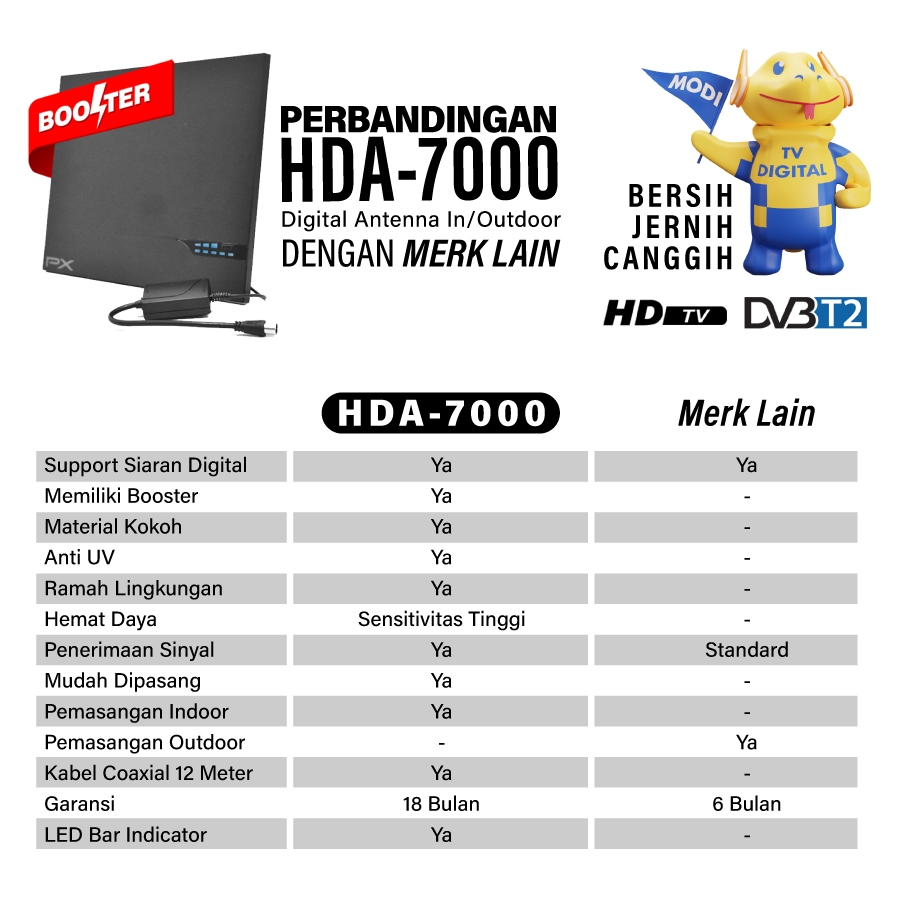 Antena TV Smart Digital Analog PX HDA 7000 Booster Indoor LED Bar