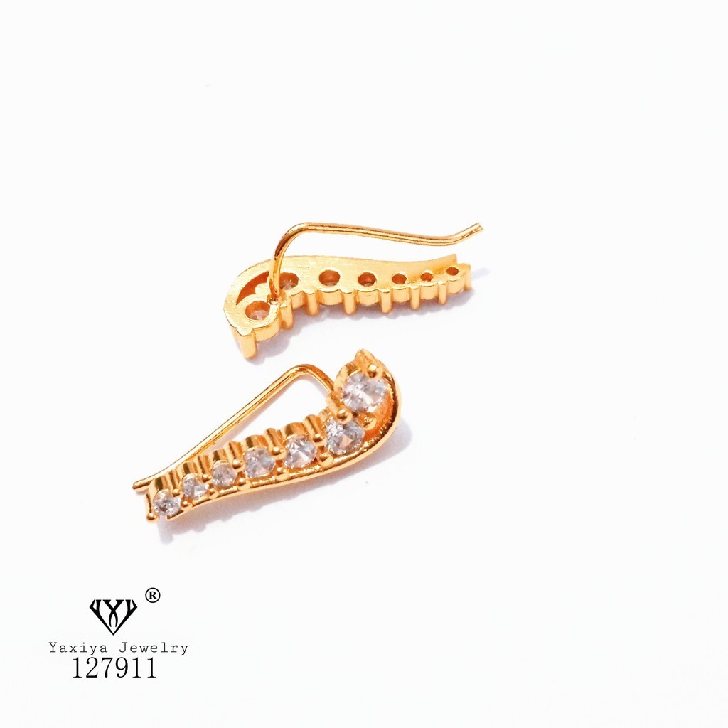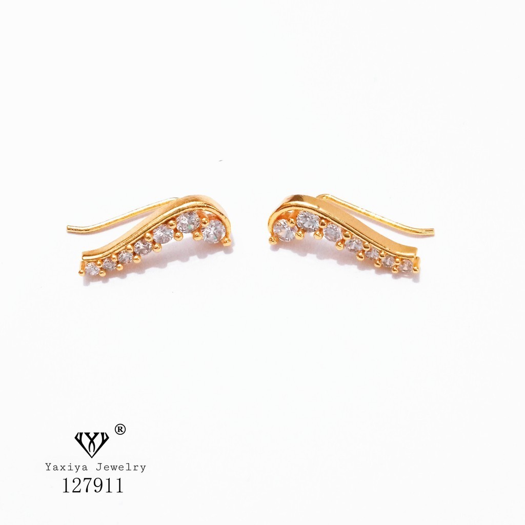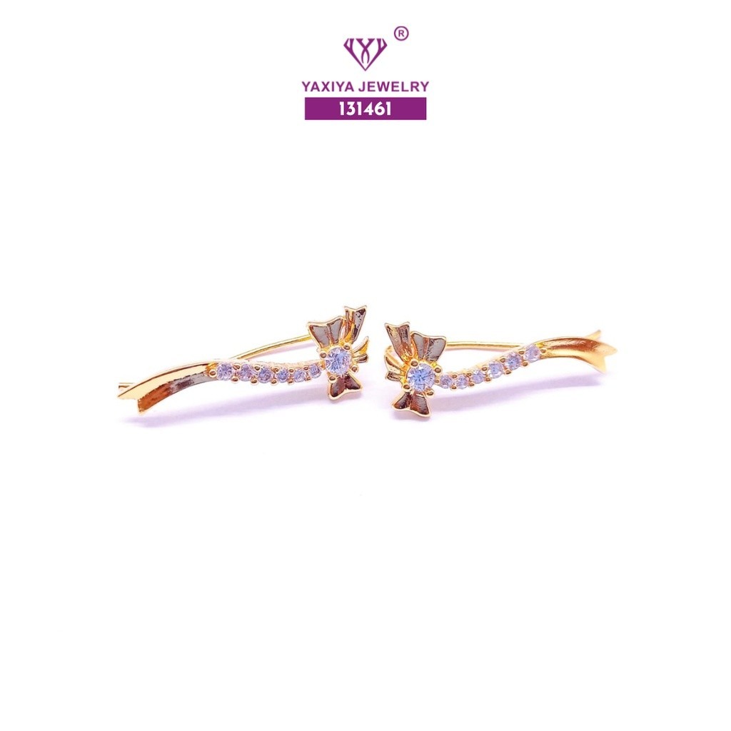 Yaxiya Anting Jalar Motif Pita Permata Perhiasan Lapis Emas 18k 471