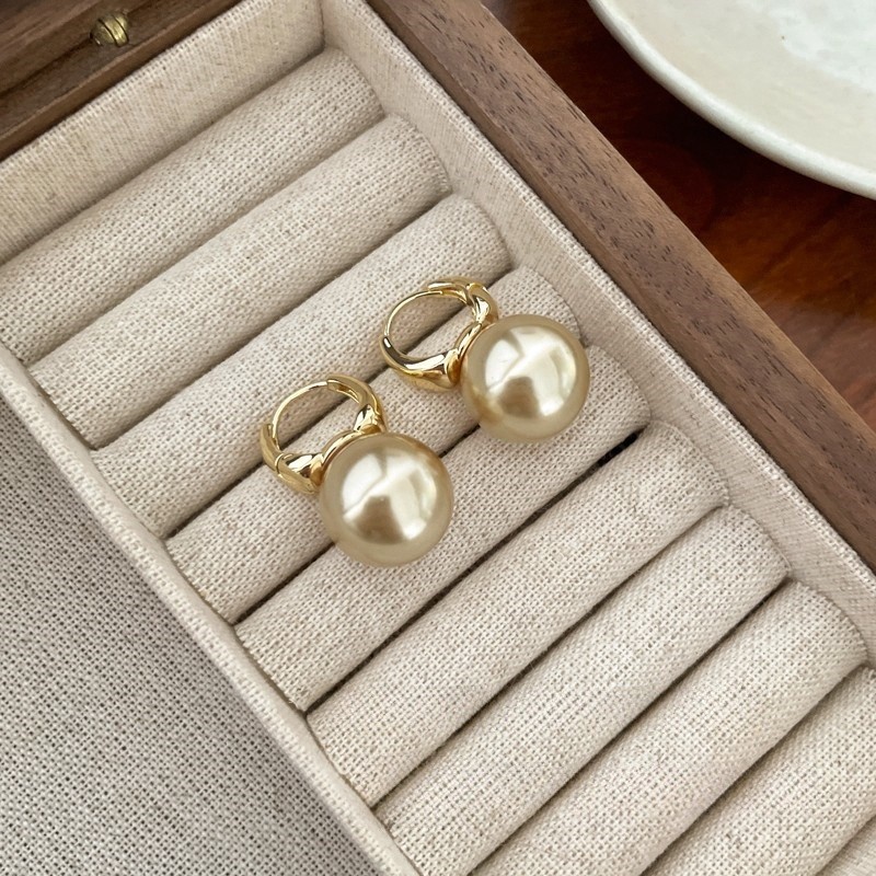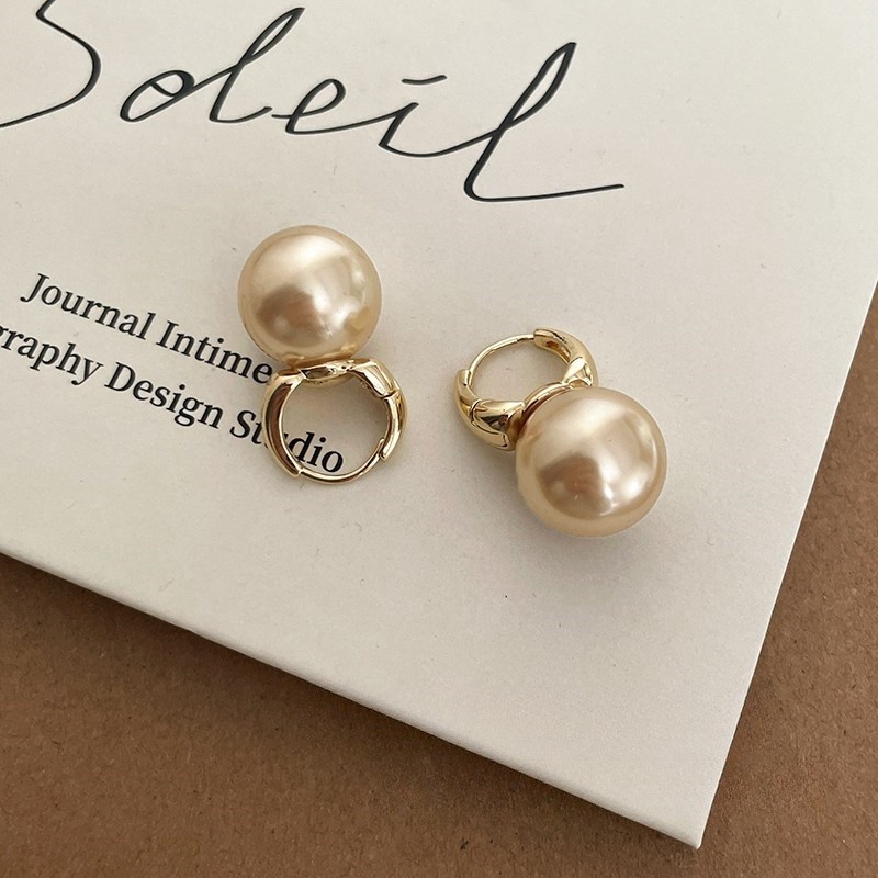 Anting Mutiara Besar Retro Korea anting titanium/ANTING HOOP RINGS PEARL KOREA STEEL model korea simple elegant steel titanium clip mutiara