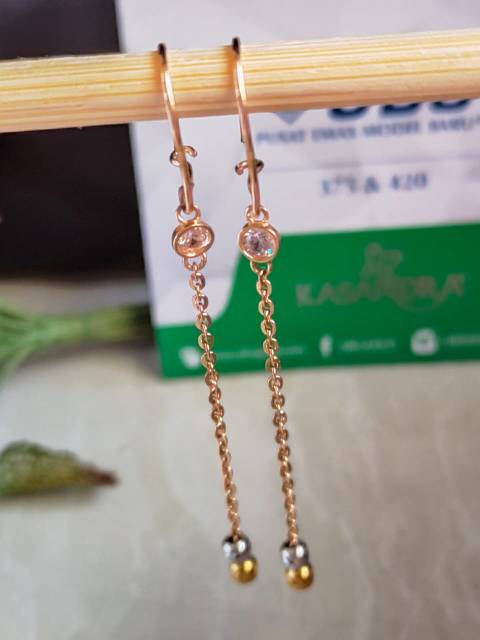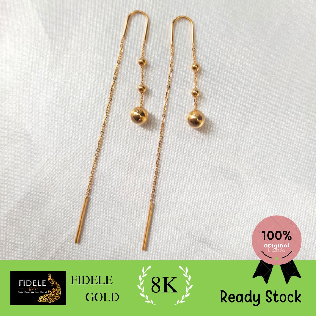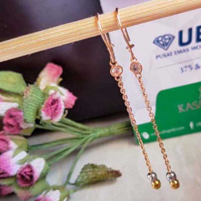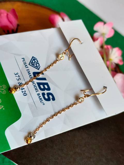 Anting panjang emas asli itali UBS diamond look Anting Trider Bola Doff Anting Bola Pasir Anting Boba Anting Fashion