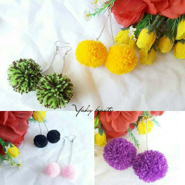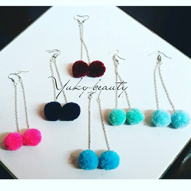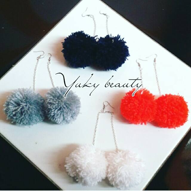 Anting pompom small medium large cherry / pompom earrings / anting hijab panjang korea