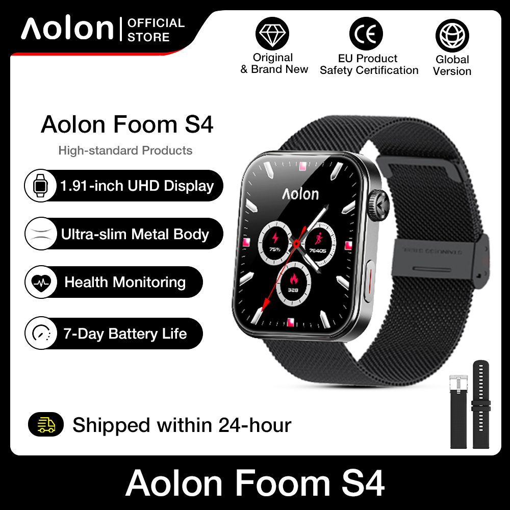 Aolon Foom S4 Smartwatch Original Stainless Steel | Running Pace | Bedside Lamp Jam Tangan Pintar IPS Display