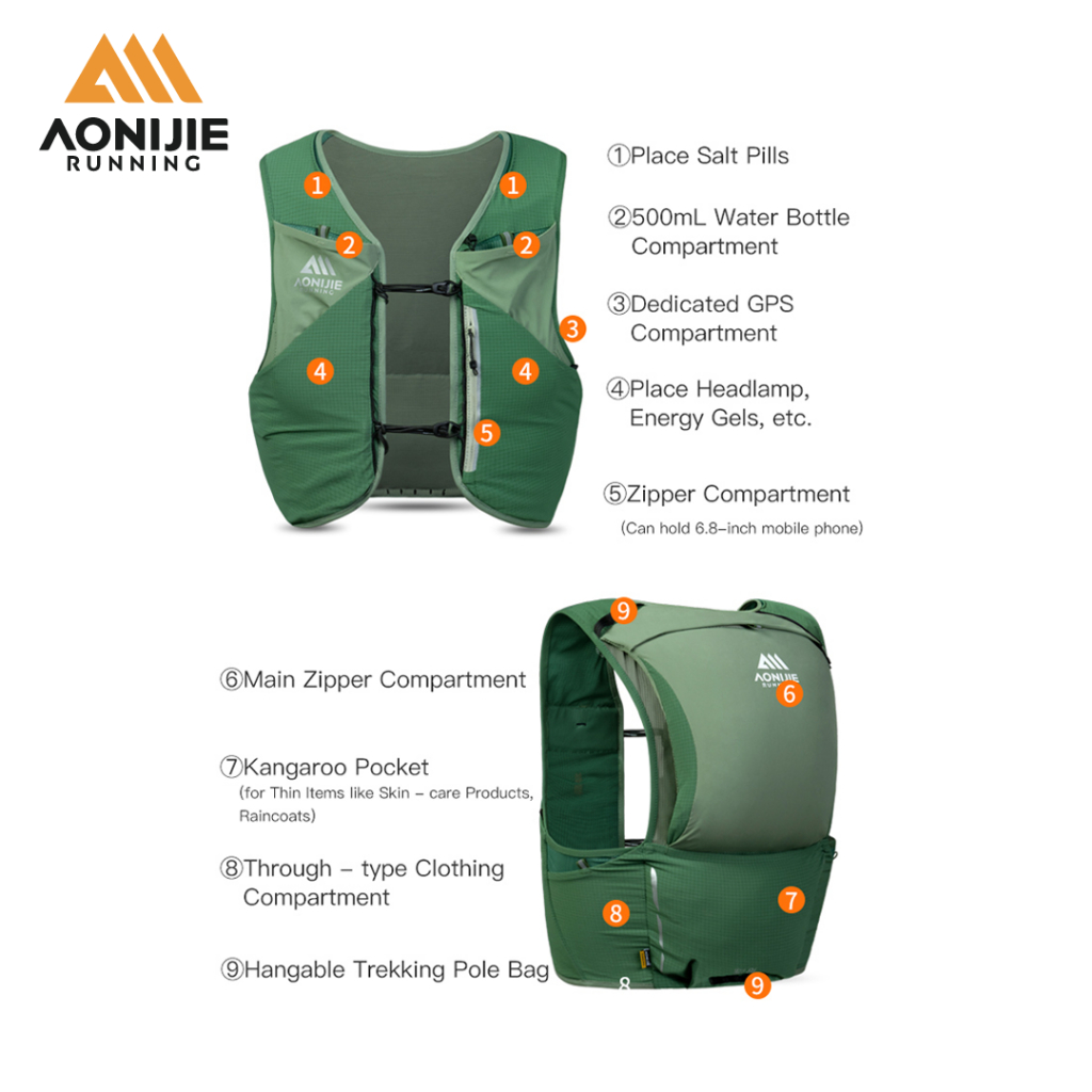Aonijie Hydration Backpack MB-8 - 8L Trail Marathon Running - GREEN