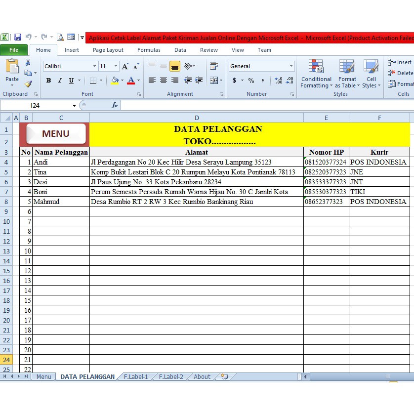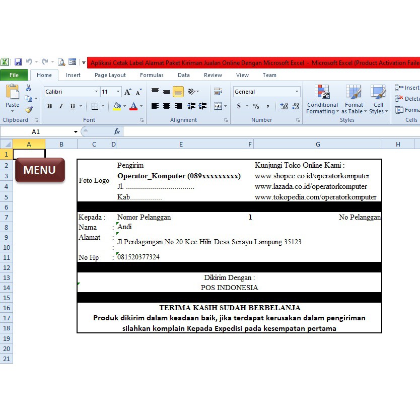 Stiker Label Aplikasi Cetak Label Alamat Paket Kiriman Jualan Online Dengan Microsoft Excel