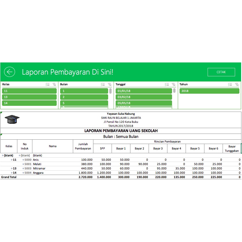 Aplikasi Excel Pembayaran SPP