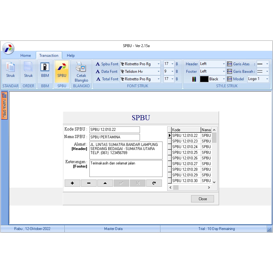 Aplikasi Struk SPBU / BBM & Struk SHELL Ver 2.15a