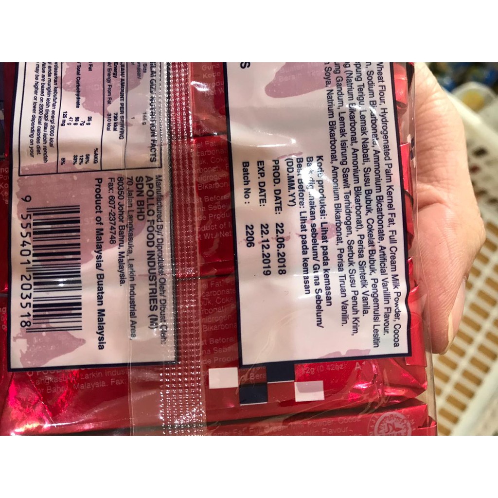 Apollo Milk / Chocolate Wafer Cream Malaysia Biskuit Biscuit Cokelat Susu Apolo