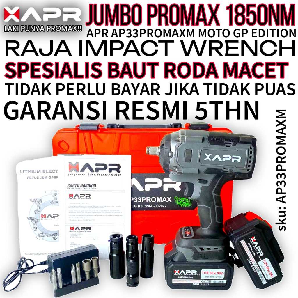Apr RAJA impact wrench APR jumbo PROMAX AP33 GP edition 1850nm 1/2inch 2baterai 10cell 99v garansi resmi 5thn