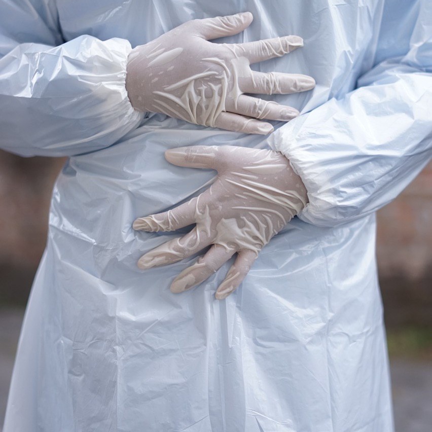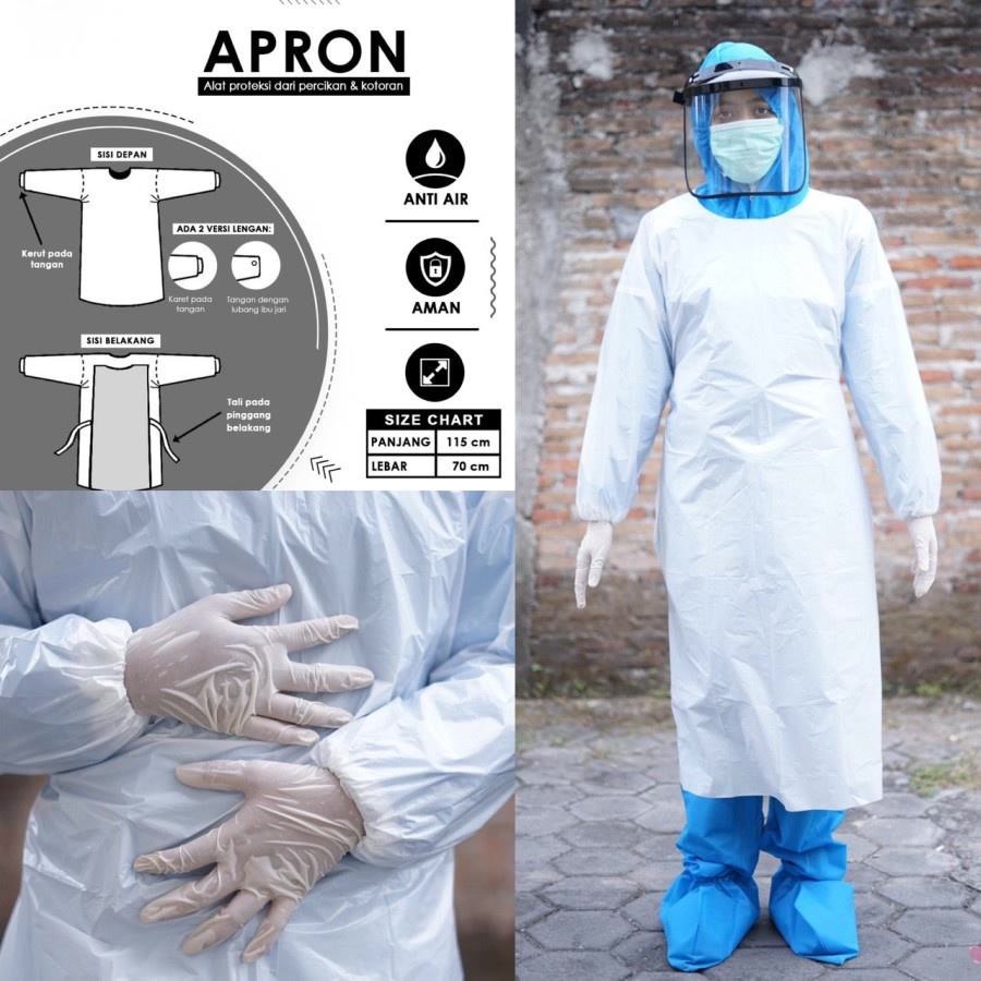 Apron Medis Lengan Panjang Dengan Karet / Apron Medis Lengan Panjang penutup Hazmat APD Gown Putih