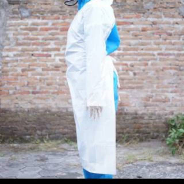 Apron Medis Lengan Panjang penutup Hazmat APD Gown warna putih isi 10 pcs