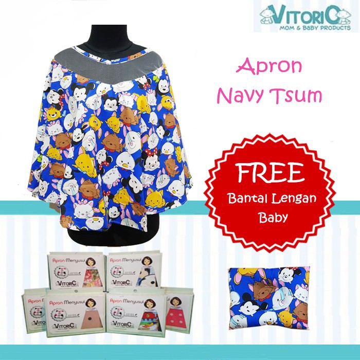 Apron Menyusui Jaring Vitorio Motif + Bantal Peyang Lengan Celemek Nursing Cover