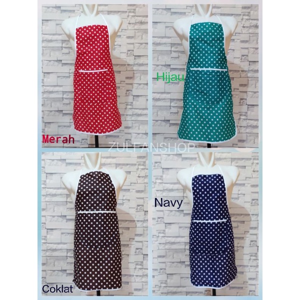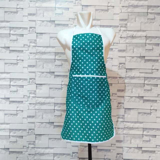 Apron celemek masak kain motif polkadot perlengkapan memasak dan kebersihan