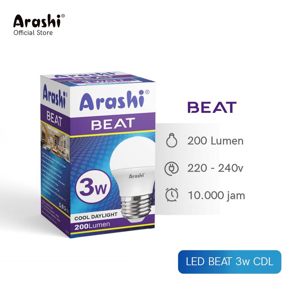 Arashi Lampu LED Beat 3watt Cahaya Putih