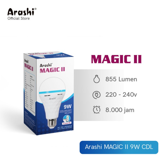 Arashi Magic II 9 Watt CDL - Putih / Lampu LED emergency 3 Mode DC