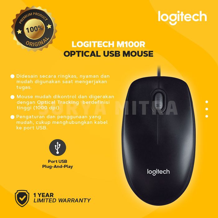Logitech M100R / M 100R Optical Mouse USB