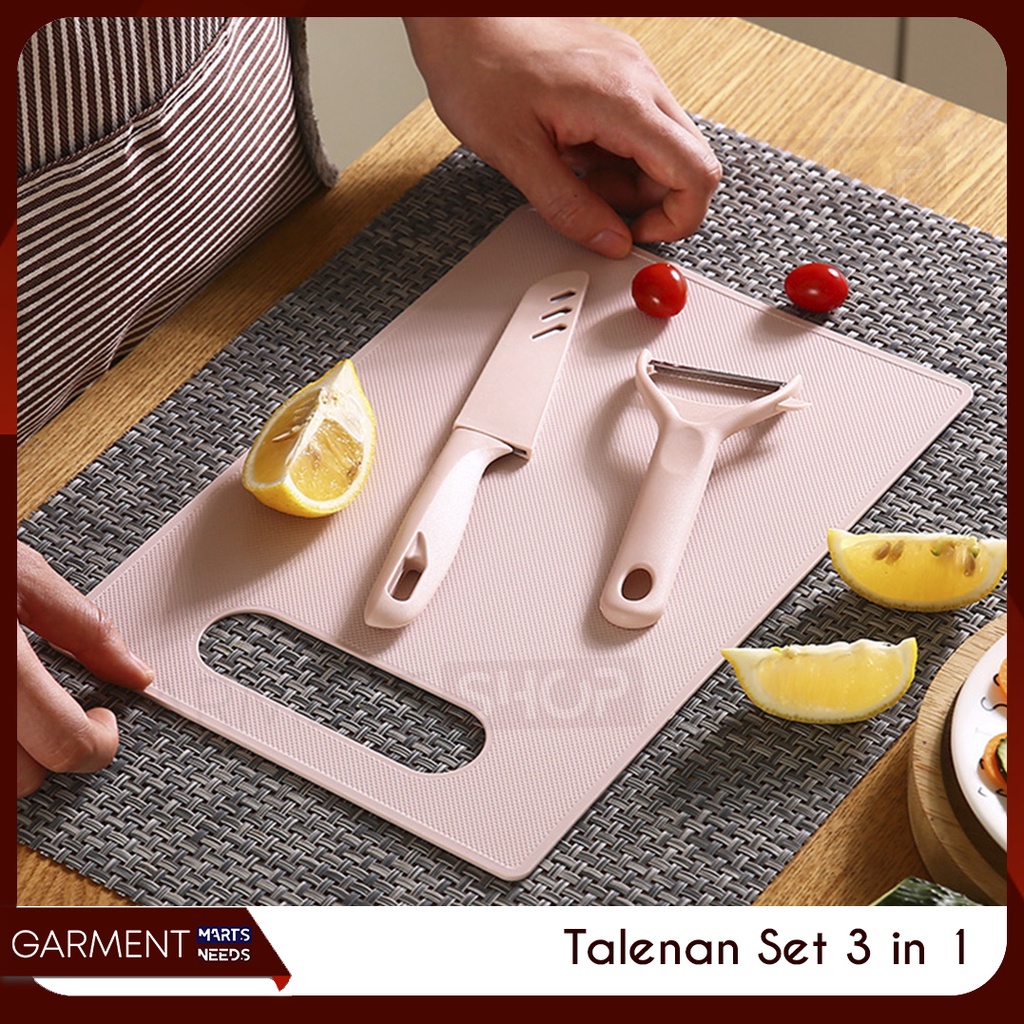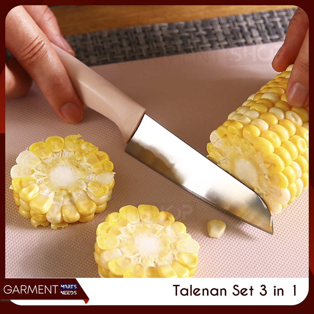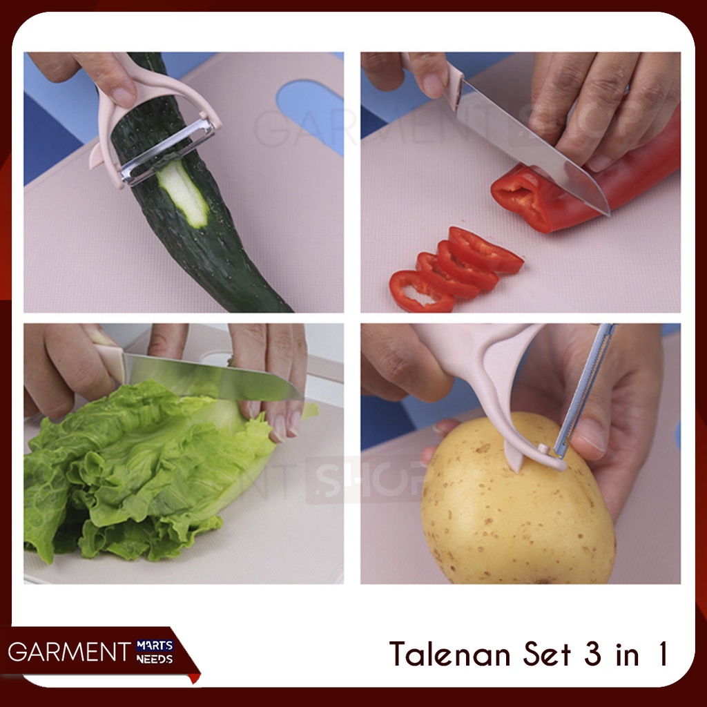 Pisau Set Talenan 3 in 1 Pengupas Kulit Buah Sayur Serbaguna Stainless
