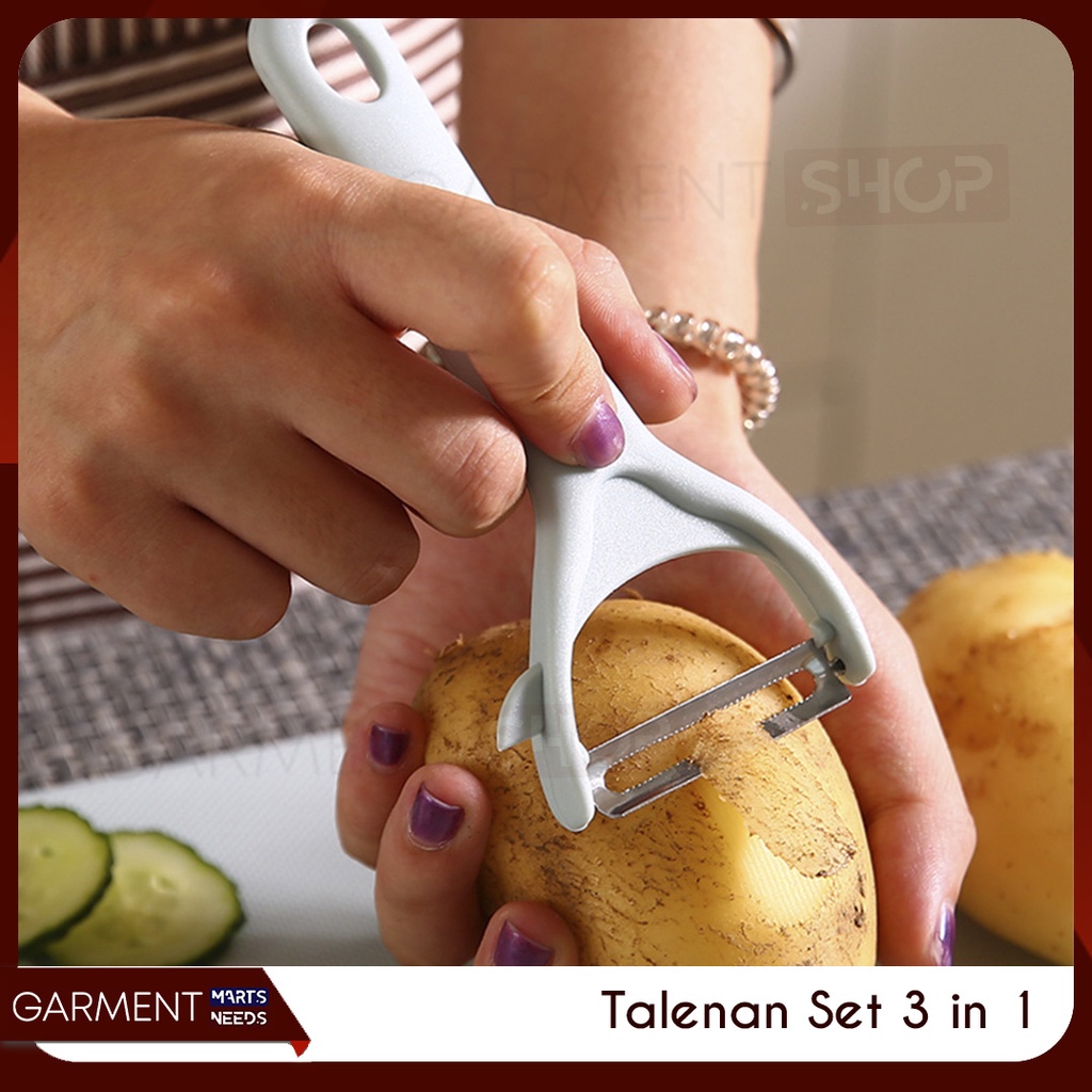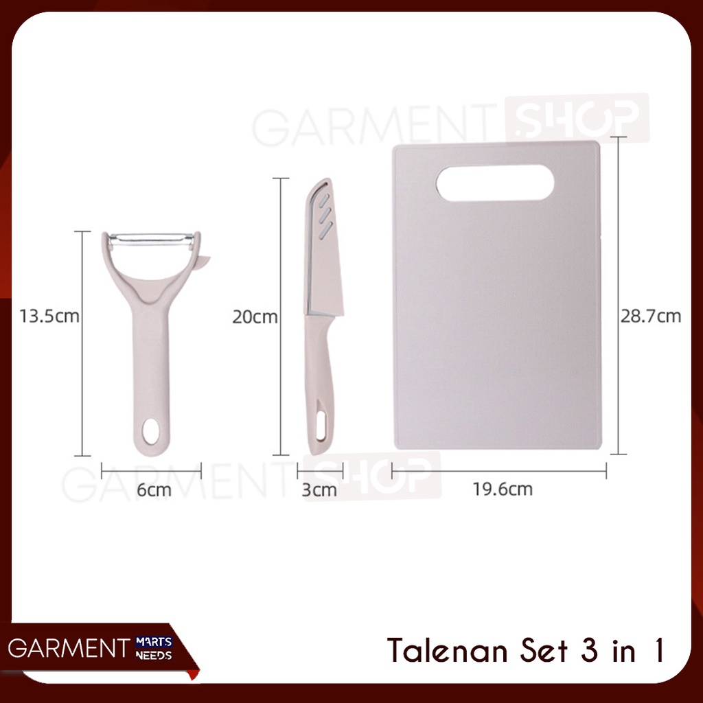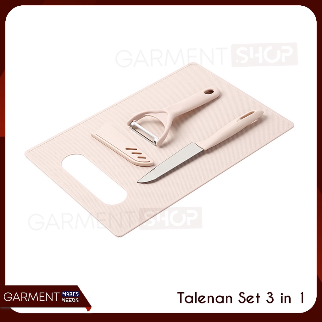 Pisau Set Talenan 3 in 1 Pengupas Kulit Buah Sayur Serbaguna Stainless