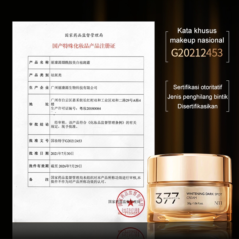 377 Cream flek hitam membandel Pemutih wajah glowing Krim penghilang flek hitam 30g Menghilangkan flek hitam Melasma Bintik penuaan Aman untuk ibu hamil