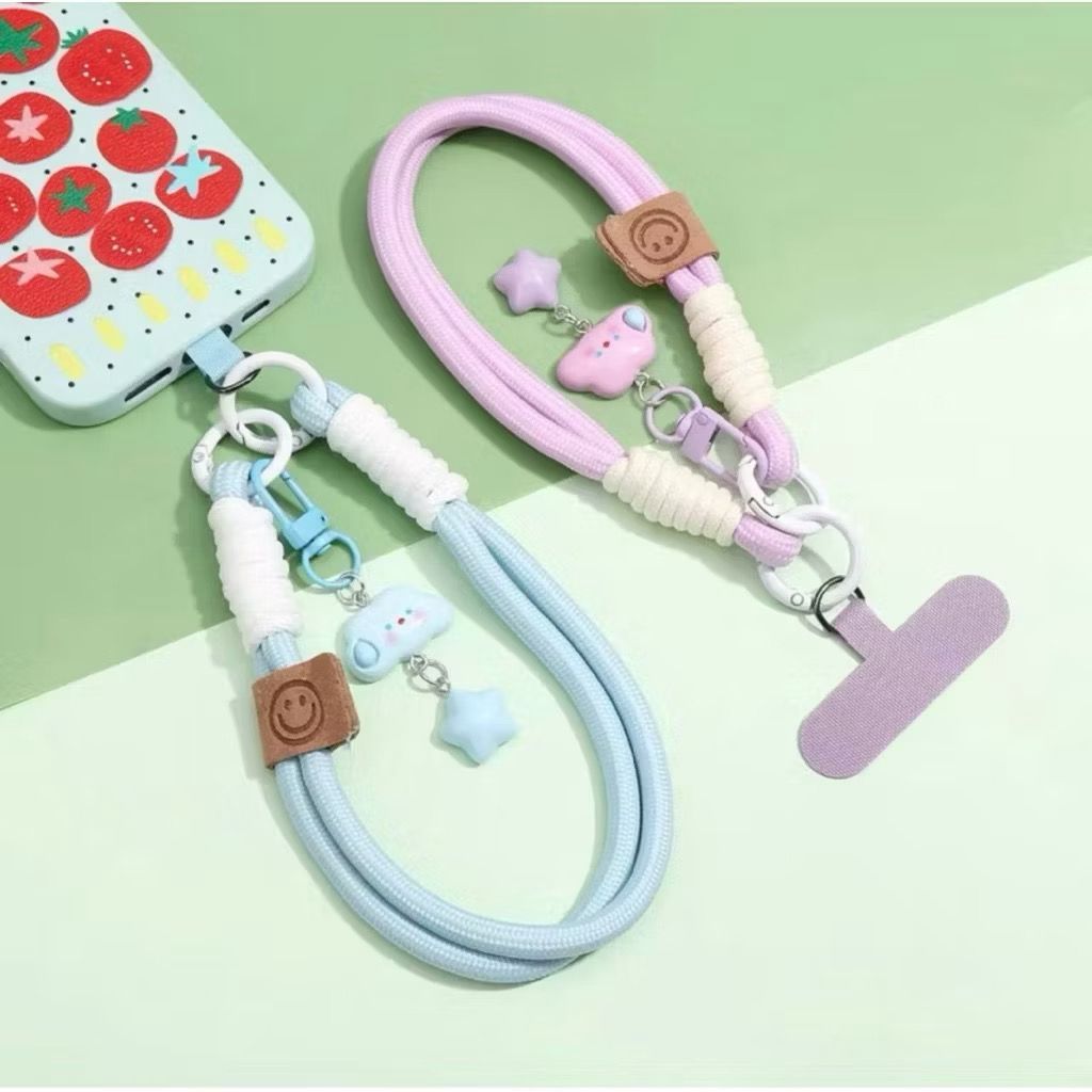 Tali Gantungan HP / Kunci Lanyard Macaron Universal Bisa Cross - Tangan Motif Bintang Awan KUCING IKAN Gantungan Handphone