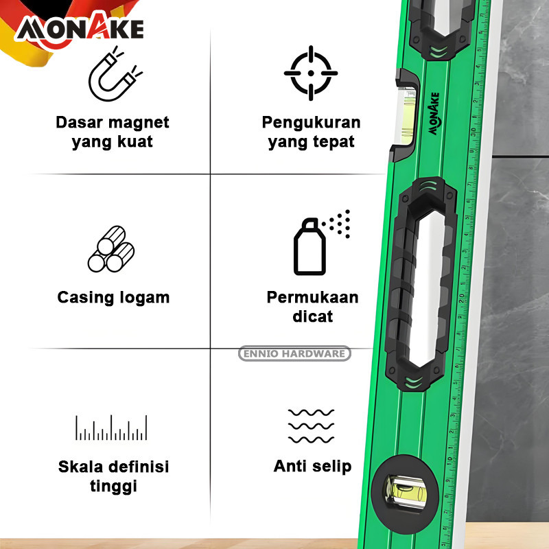 German Tools Level magnetik Waterpass Aluminium Waterpas Magnetic Akurat Perkakas 40/60/80/100CM