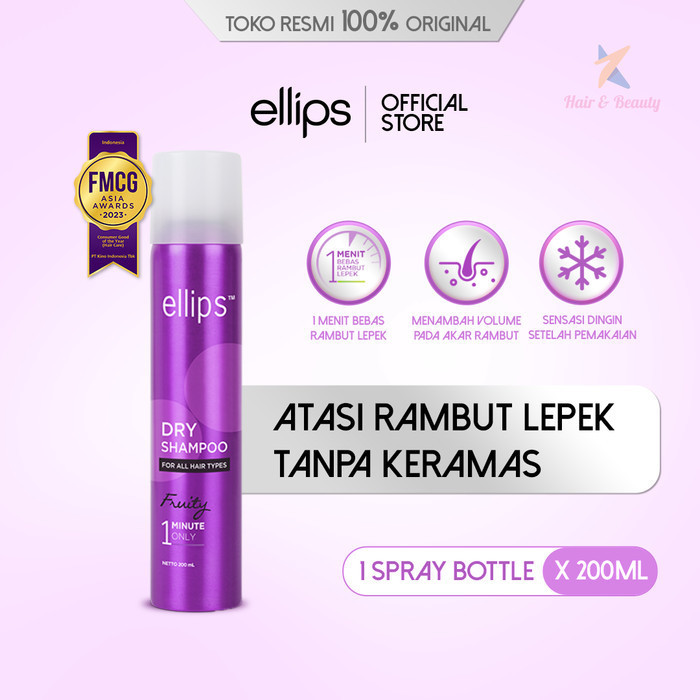 Ellips Hair Dry Shampoo Fruity 200ml | Anti Lepek Instan, Rambut Segar & Bervolume