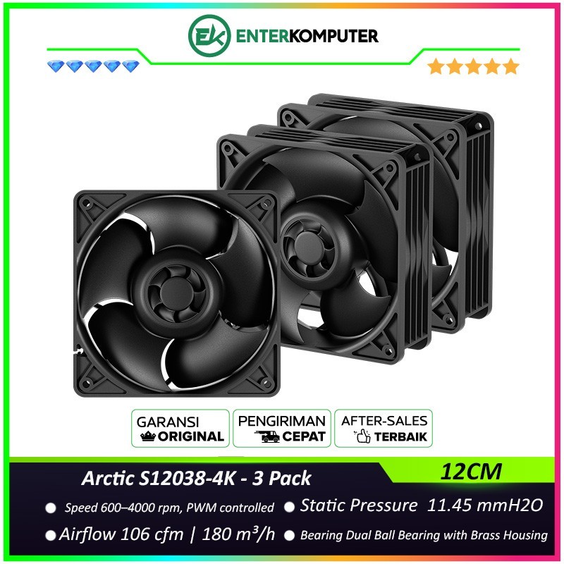 Arctic S12038-4K 12CM 4K RPM Server Fan (3 Pack)