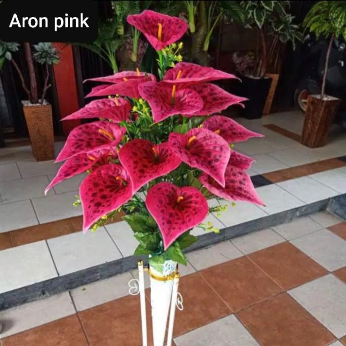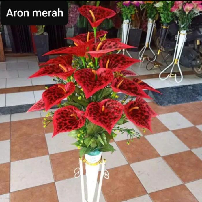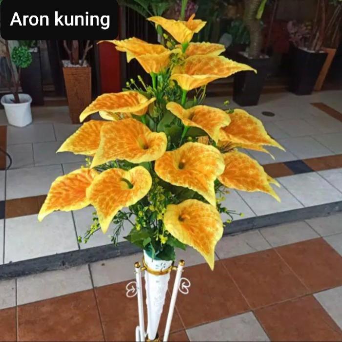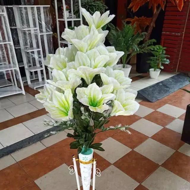 Ardefi | Bunga Lily Aron Artificial + Standing Pot Besi Set/Bunga Pojok Ruangan