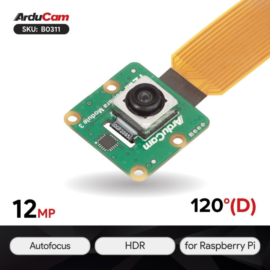Arducam 12MP IMX708 Autofocus Camera Module 3 Wide with HDR Mode and PDAF Function for Raspberry Pi