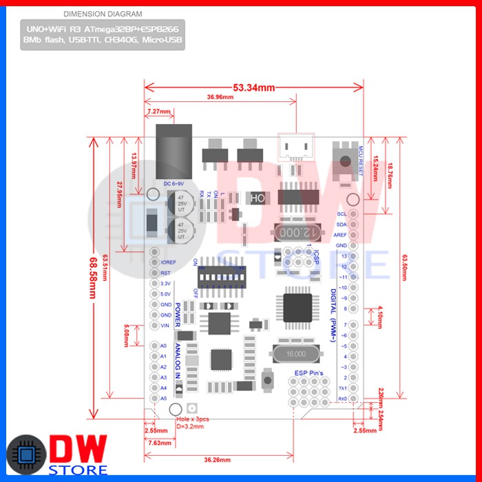 Arduino Uno R3 IOT Wifi ESP8266 32MB Wemos Nodemcu Board ATmega328P