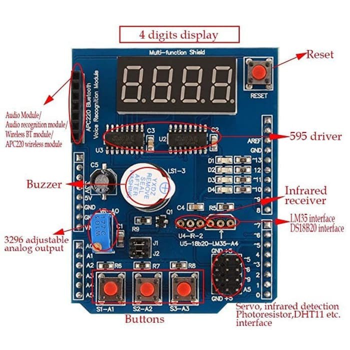 Arduino Uno Shield Learning Training Trainer Kit Basic Module Belajar