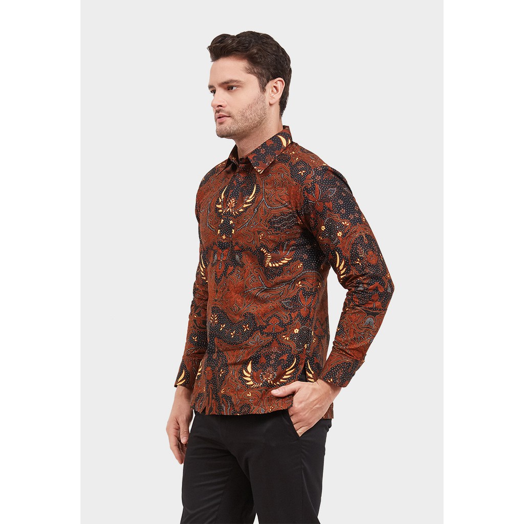 Arjuna Weda Kemeja Batik Nitik Mahkota Raja - Cokelat