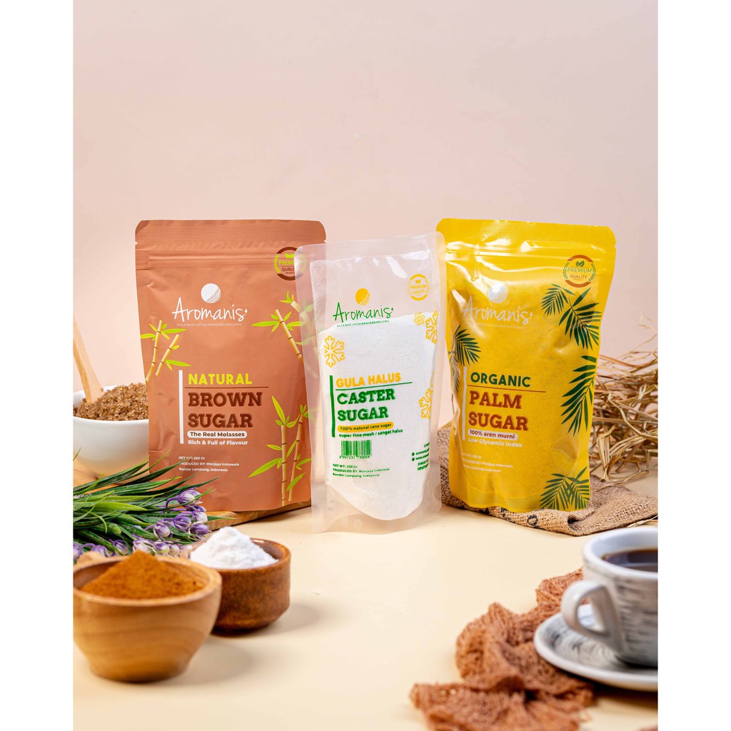 Aromanis Sugar Bundle 3 pcs (Palm Sugar 250gr, Brown Sugar 250gr, Caster Sugar 250gr)