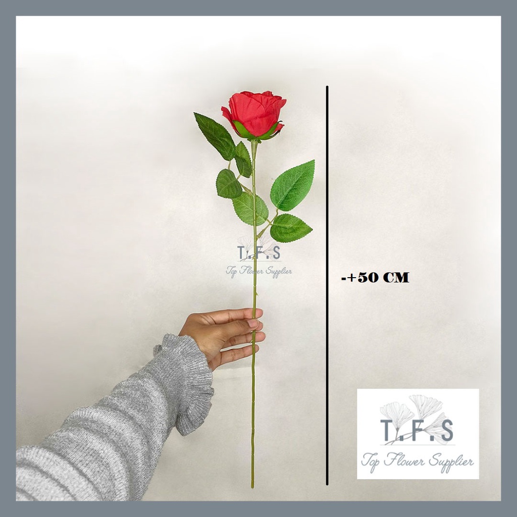 Artificial Flower Rose Bunga Mawar Palsu Single Rose Bunga Tangkai Plastik Hias Dekorasi