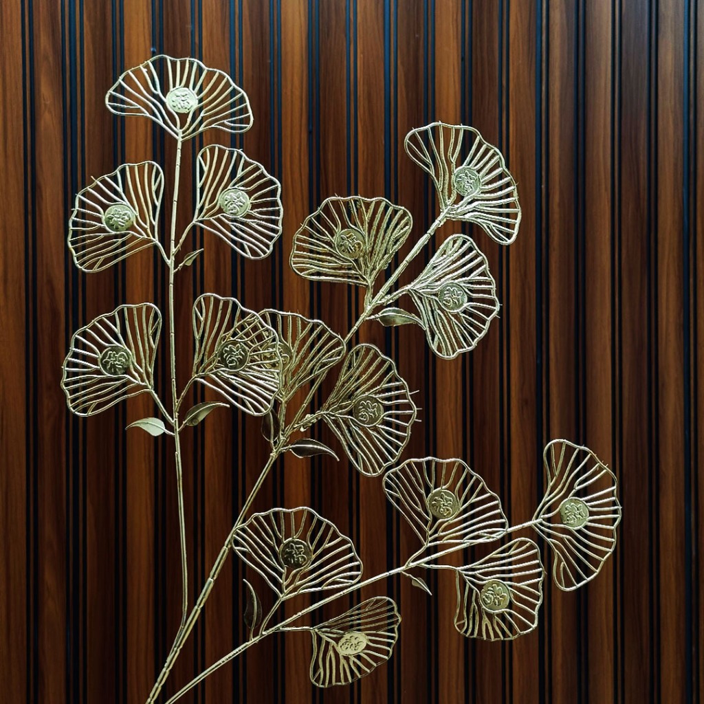 Artificial Gold FU Ginkgo Bunga Kipas Emas Premium Bunga Ginkgo Imlek Dekorasi Chinese New Year Decoration Imlek 2025 Hiasan CNY Bunga Emas Artificial Flower Bunga Palsu Bunga Gold Imlek Ular Decoration