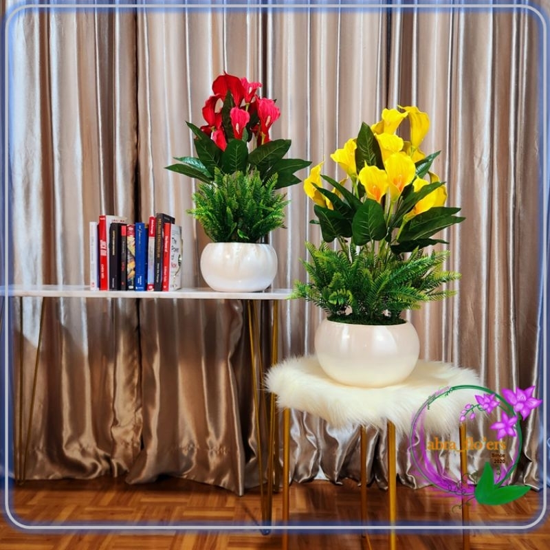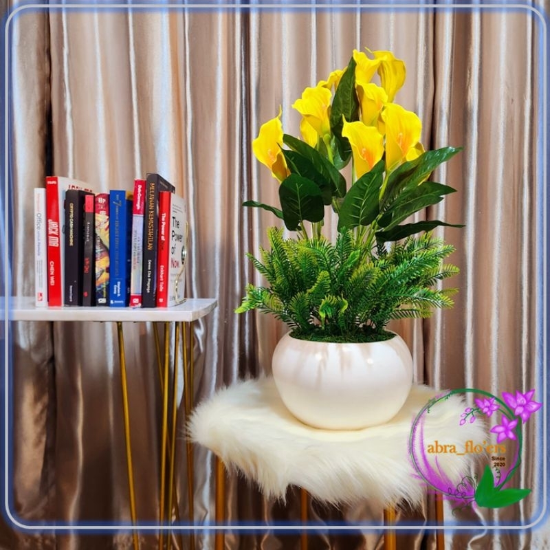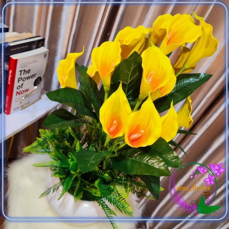 Artificial Plant - Bunga Calla Lily 15 Tangkai + Pot Kuning
