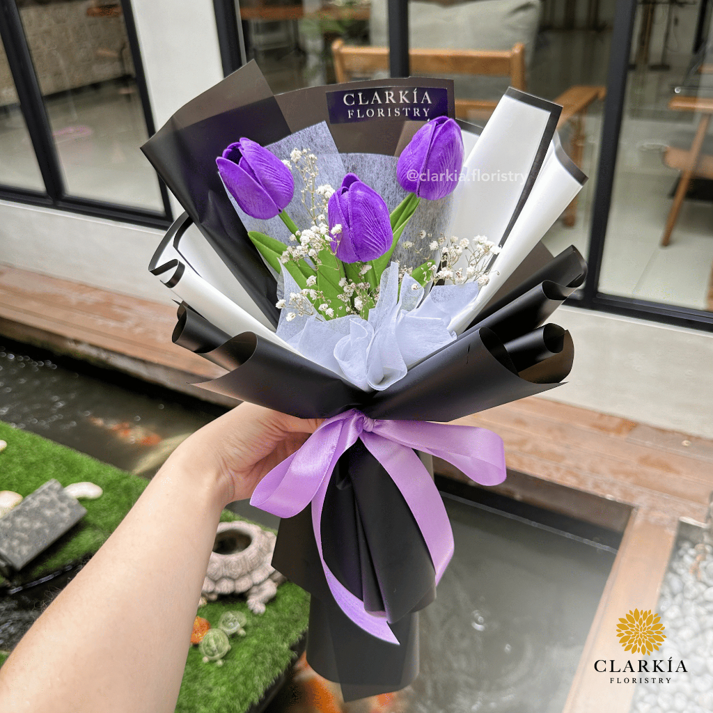 Artificial 3 Tulip Bouquet Clarkia | Buket Bunga Tulip | Hadiah Kado Wisuda Ulang Tahun Anniversary