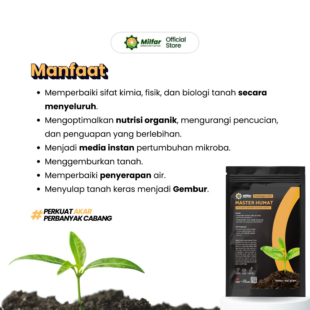 Asam Humat 90% Pembenah Tanah - Master Humat MILFAR.ID - Cepat Larut & Perkuat Akar 100 gram.