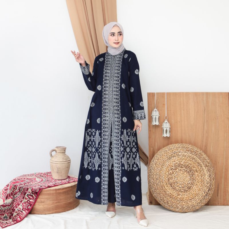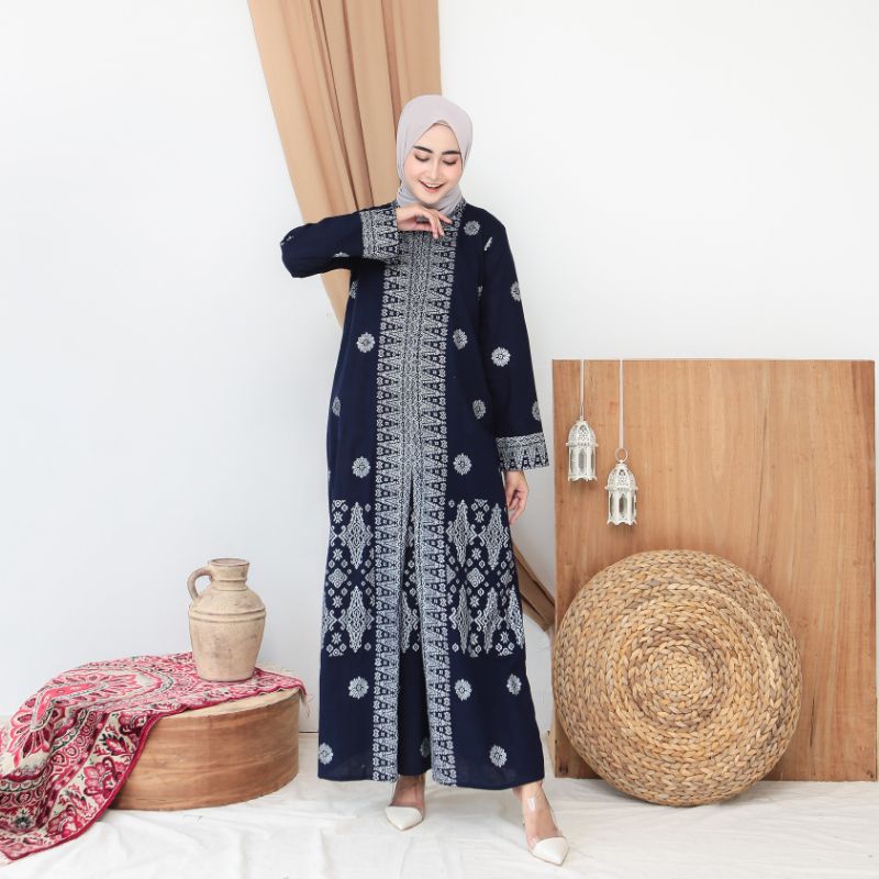 Asanti Dress Batik Al Mubarok Warna Navi Silver