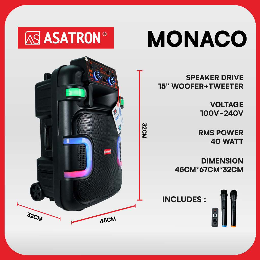 Asatron Monaco 15 Inch Bluetooth Party Speaker