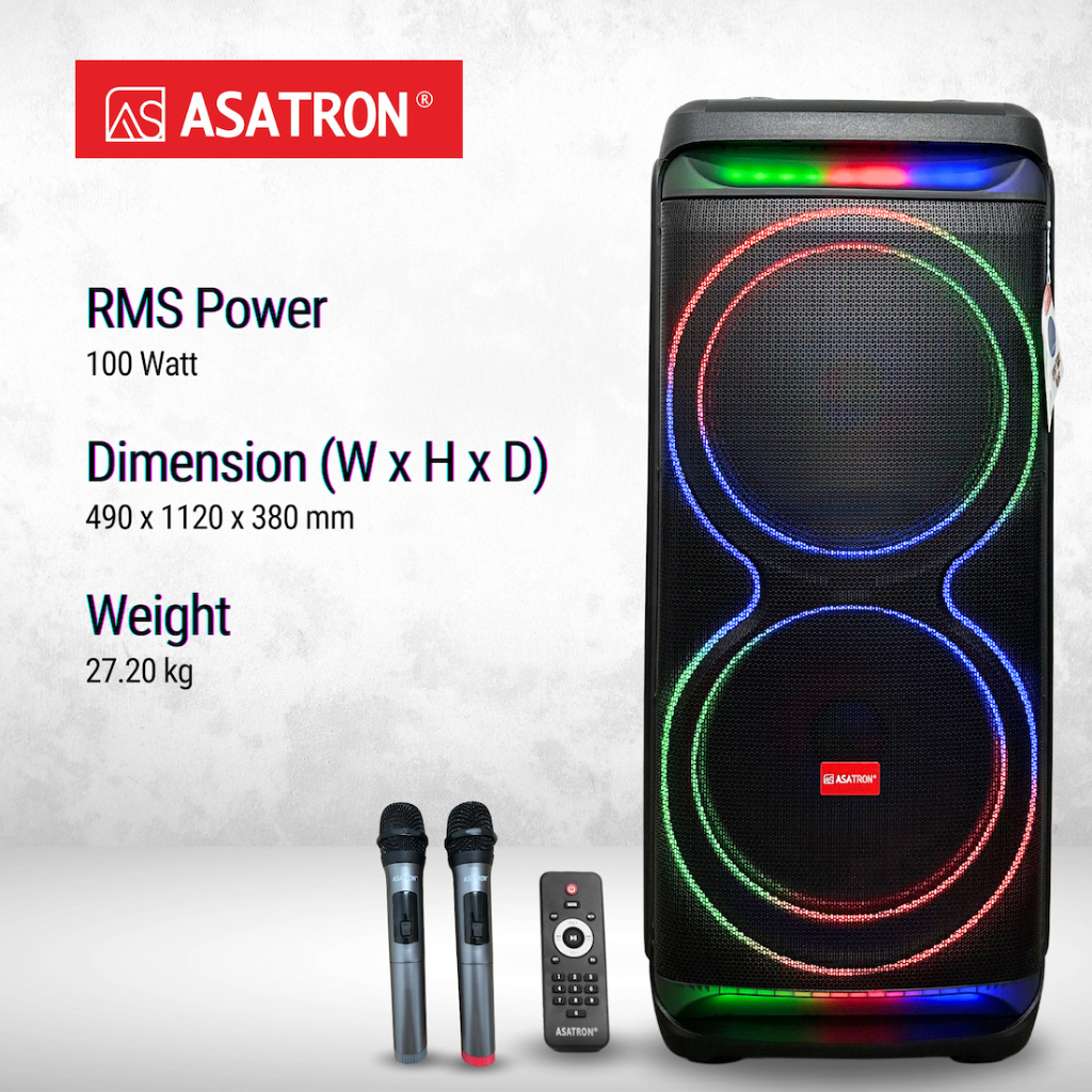 Asatron Megablast Dual 15 Inch Bluetooth Party Speaker with 2 Wireless Mic