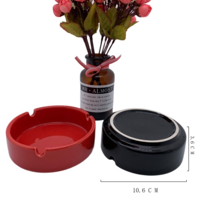 Asbak Keramik Bulat Merah/Hitam/Putih