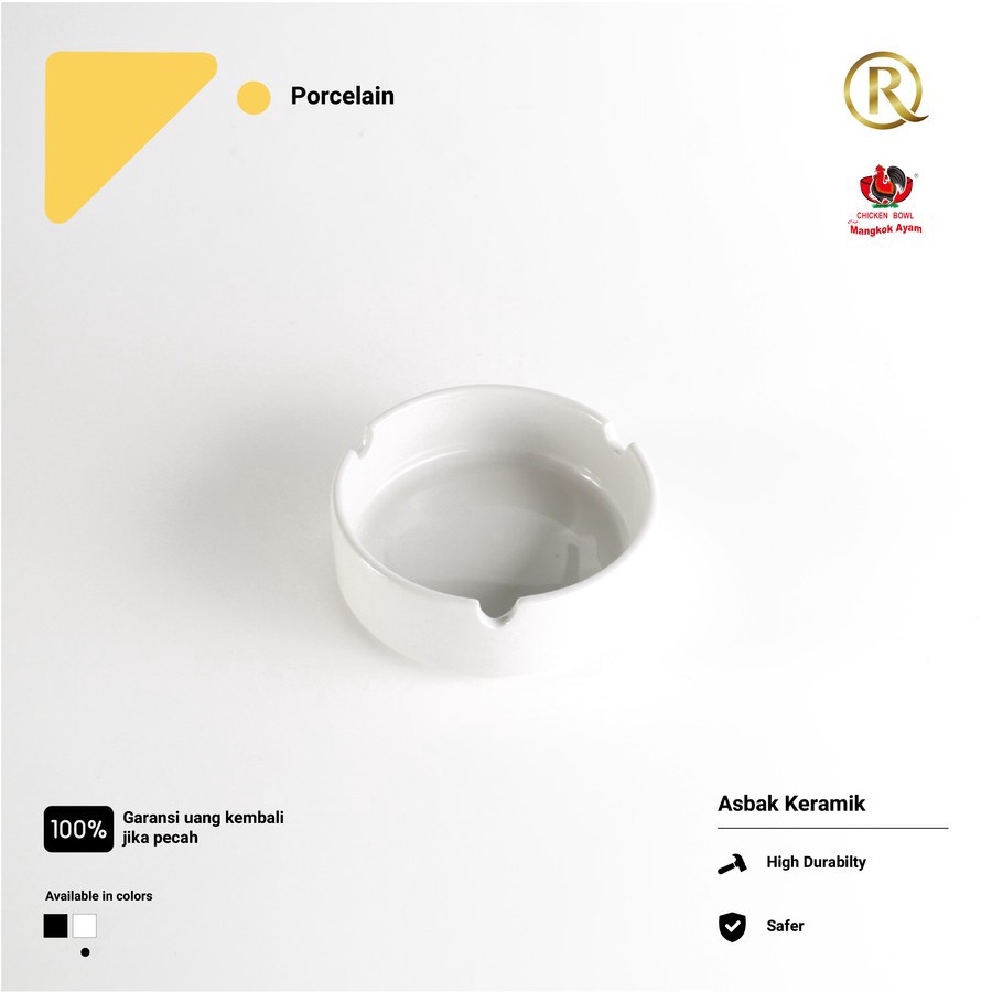 Asbak Rokok Keramik Porselen Hitam Putih 4" Ceramic Porcelain Ashtray Asbak Meja Cafe Restoran Hotel Rumah Makan Kantin Tempat Sampah Kertas Tissue Permen Abu Rokok Kotoran