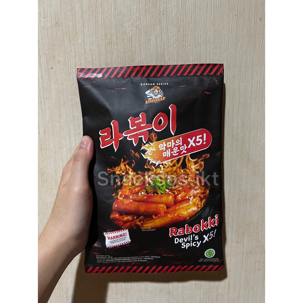 Ashiaaap Rabokki / Topokki- Ramen Topokki HALAL / Tteokbokki Instant Toppoki Tokpoki Topoki / Ashiaaap Rabokki Devil's Spicy X5! - Ramyun Topokki Extra Pedas / Ashiaaap Ramyeon