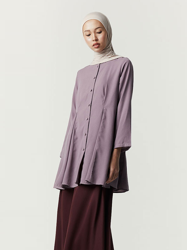 Wiyana by Aska Label - Basic Blouse Wanita Muslim Full Kancing warna Lilac, Navy, Taupe, Light Moss, Olive, Deep Cranberry