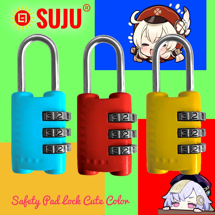Asli SUJU Gembok Keamanan Padlock Kombinasi 3 Nomor Scroll Pengunci Tool Box Tas Bag KOper MIni Loker travel Perjalanan Keamanan Barang Bawaan Warna Lucu Cocok Juga Untuk Tas golf Back Pack TAs Gunung Kantor Siswa Anak Sekolah