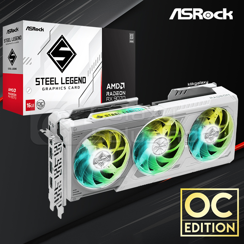 Asrock Radeon RX 9070 STEEL LEGEND 16GB OC GDDR6 RDNA 4 - VGA RX9070 DDR7 Graphic Card