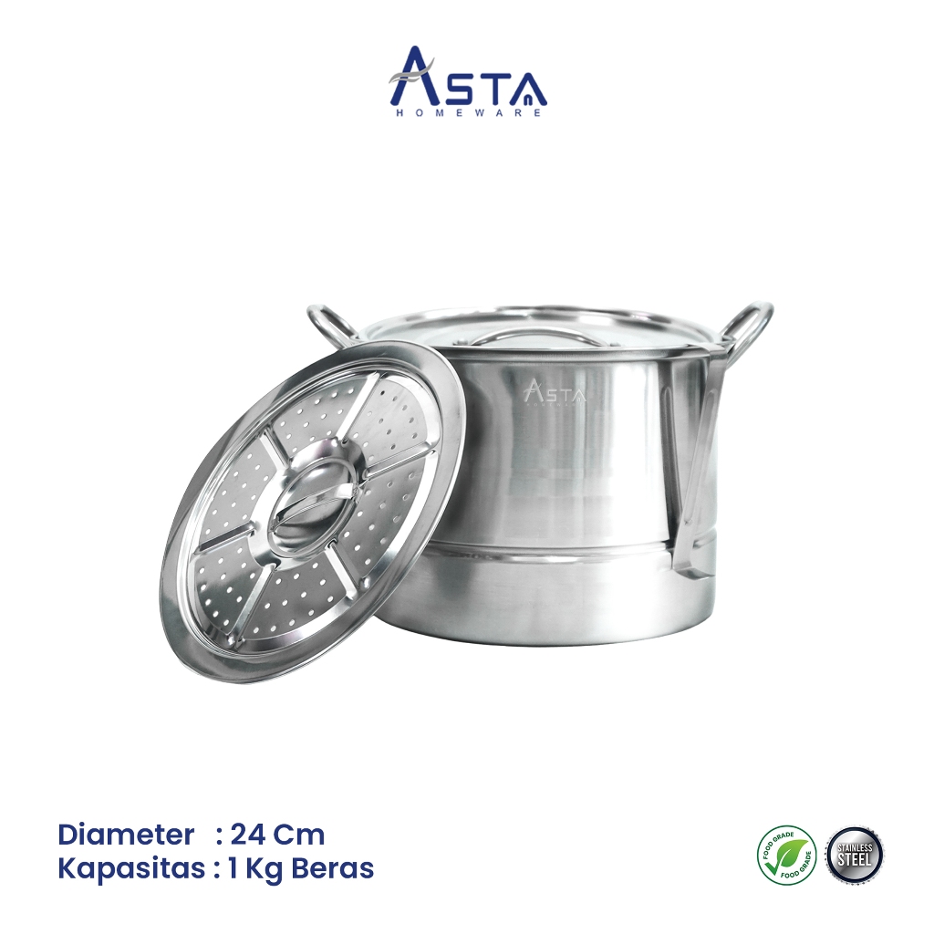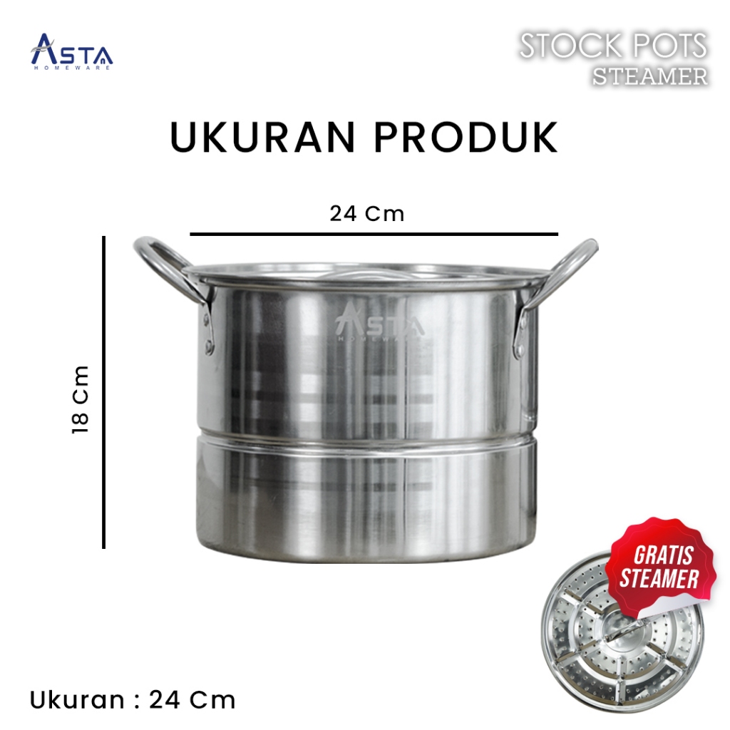 Asta Panci Dandang Kukus Stainless Steel Stock Pot Steamer Dandang Bakso Nasi Tebal
